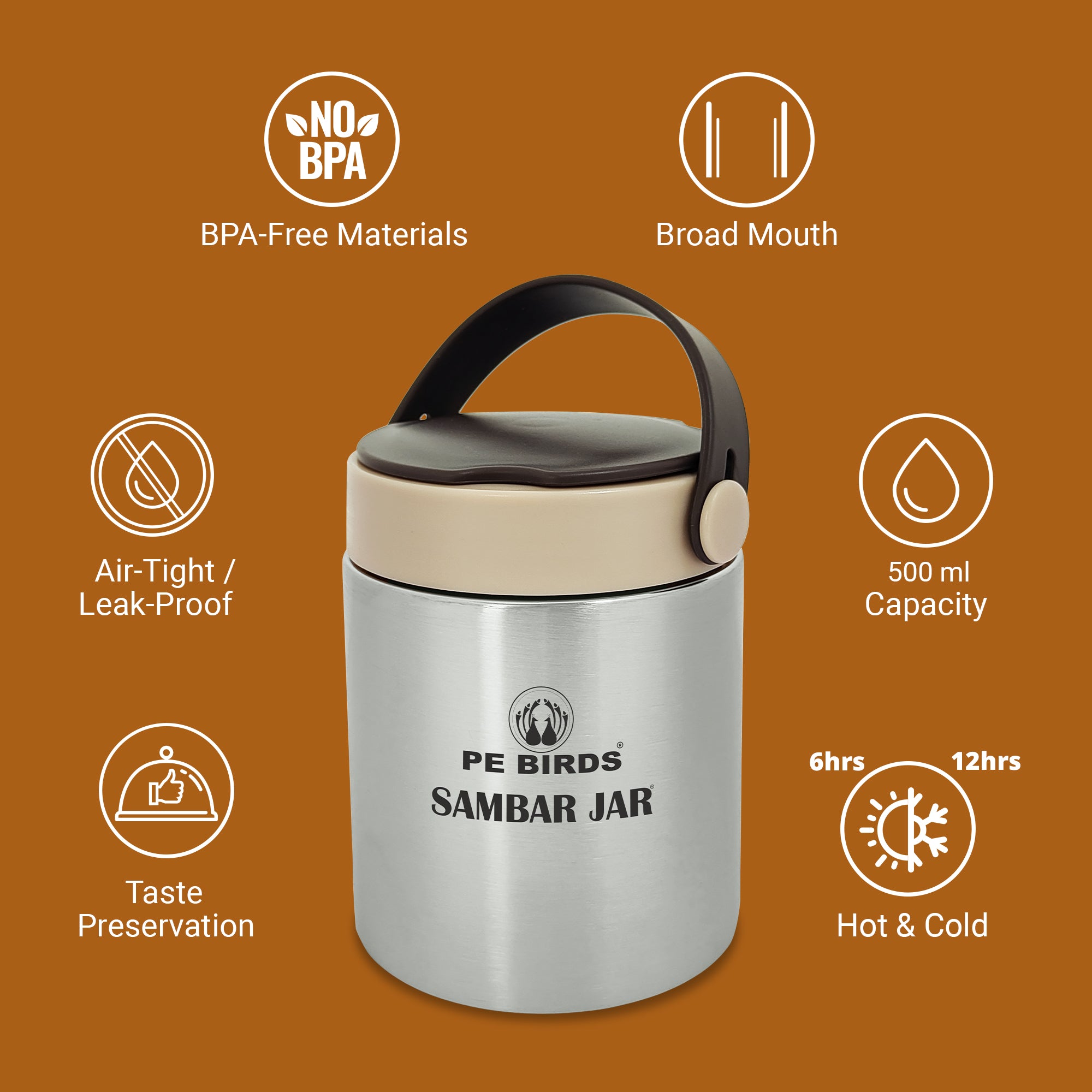 PeBirds Sambar Jar Nutri kit 2 Insulated Food jar with Insulated lunch Bag