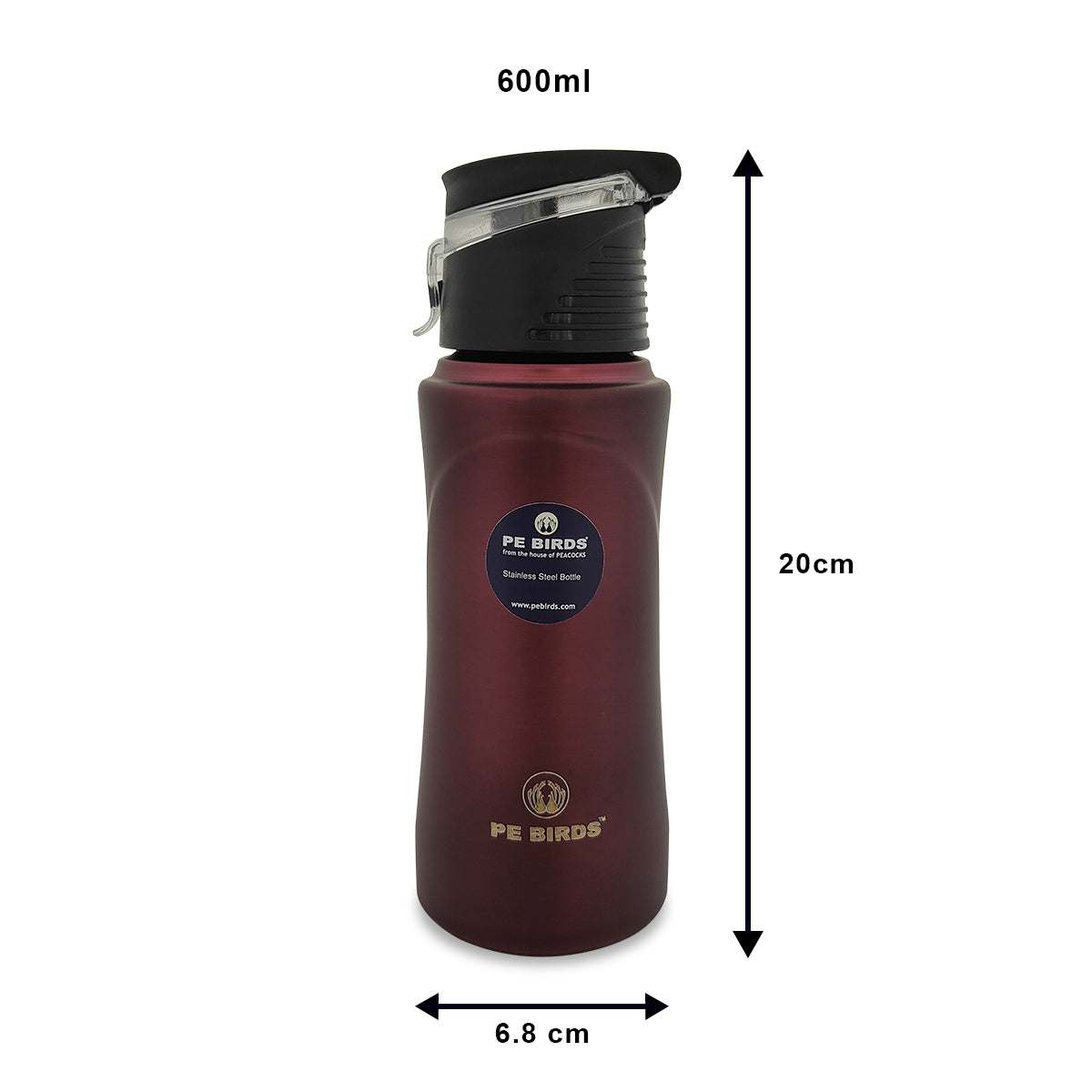 PE BIRDS Tiny Tot 600ml Stainless Steel Sipper Water Bottle - Leak-Proof, Durable & Stylish - pebirds-peacocks